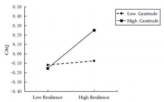 The moderating effect of gratitude on the relation between resilience and CAQ.