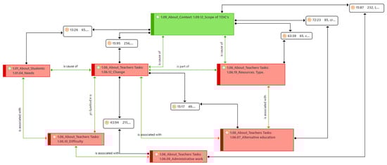 Semantic network of the relationships between the codes associated with the scope of changes brought about by ICTs in teaching tasks.3