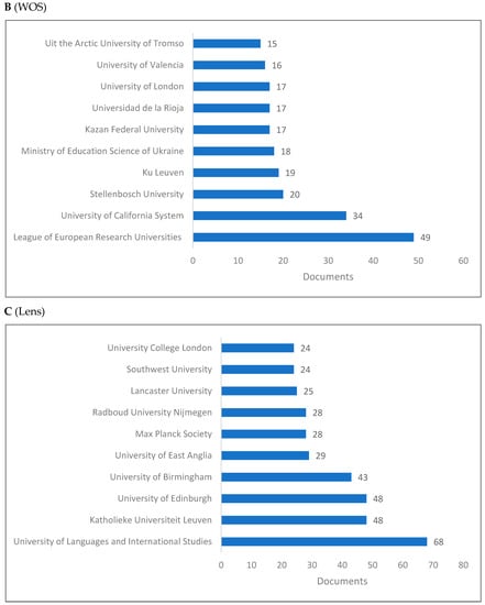3.1.2. Production of Cognitive Linguistics Research by Country and University