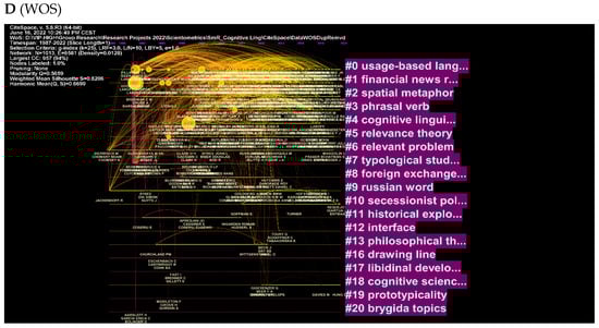 3.1.4. Production of Cognitive Linguistics by Research Area, Keywords, and Cooccurrence