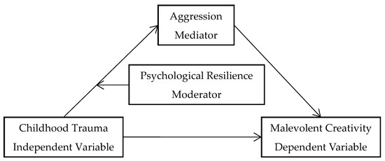 Numerous studies have shown that childhood trauma, aggressive behaviors, and psychological resilience are associated with malevolent or benevolent creativity (Anser et al. 2022; Harris and Reiter-Palmon 2015; Lee and Dow 2011; Marwa and Milner 2013; Zhang et al. 2018). Therefore, the present research utilized a Chinese adolescent sample to investigate the roles of aggression and psychological resilience in the association between childhood trauma and malevolent creativity. Specifically, we aimed to examine whether aggression mediated the association between childhood trauma and malevolent creativity and whether psychological resilience moderated this mediating process.