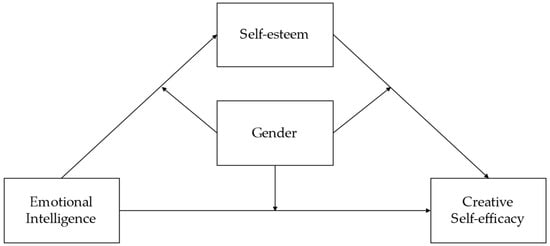 According to the above, the moderation effect of gender in the relationship between emotional intelligence and creative efficacy, emotional intelligence and self-esteem, and self-esteem and creative self-efficacy in gifted children cannot be accurately inferred according to previous studies, so this study used an exploratory approach to analyze the moderating role of gender in these three pathways at the same time, so as to analyze the gender difference in the mediating effect of self-esteem. Therefore, we developed the following hypothesis: