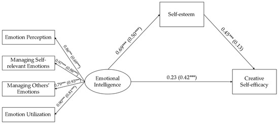 3.2. The Mediating Effect of Self-Esteem on the Relationship between Emotional Intelligence and Creative Self-Efficacy