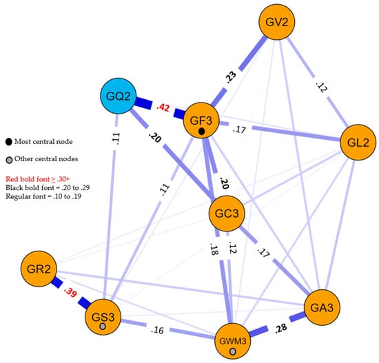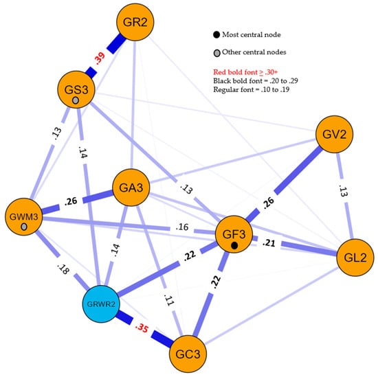 As noted by Protzko and Colom (2021), PNA is conceptually akin to bifactor factor analysis models that first remove the psychometric g variance in a collection of cognitive tests before examining the residual variance that may represent common broad CHC dimensions. PNA accomplishes the same effect by analyzing the partial correlation matrix of all tests, where, for each pair of tests, the variance shared with all other measures (i.e., psychometric g) in the network is statistically removed (McGrew et al. 2023); “this is not to be confused with the assumption that psychometric g is essential to PNA research” (p. 17). In the current context, the PNA results presented below represent the relations between specific broad CHC ability measures after psychometric g has been removed—a model consistent with Carroll’s strong g position alongside his belief that some specific broad and narrow abilities are important in applied settings.