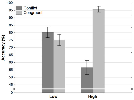 Accuracy as a function of congruence and level in Experiment 1 (error bars represent 95% CI).