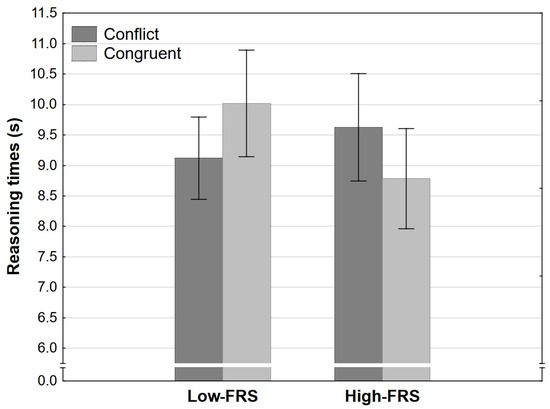 Reasoning time as a function of congruence and final response strength level in Experiment 2 (error bars represent 95% CI). FRS refers to the final response strength level (see Table 1).