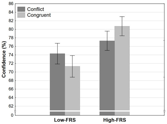 Confidence as a function of congruence and final response strength level in Experiment 2 (error bars represent 95% CI). FRS refers to the final response strength level (see Table 1).