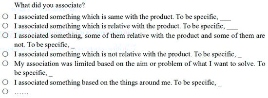 “How to make participants understand the questions” was a challenge. Providing multiple answers to each question may help participants understand the interview questions; however, this solution introduced new problems. Participants may rely on the given options to answer and be slothful to recall or think about what they actually did. In addition, participants sometimes were limited to the given results (Köhnken et al. 1995). Their answers may not reflect their actual experiences. Therefore, to reduce the limitation of this solution, the provided answers were not full; instead, they were semi-open answers. Participants were asked to complete some parts of their answers based on their experiences in the creative design process. One example question and its semi-open answers are shown in Figure 1.
