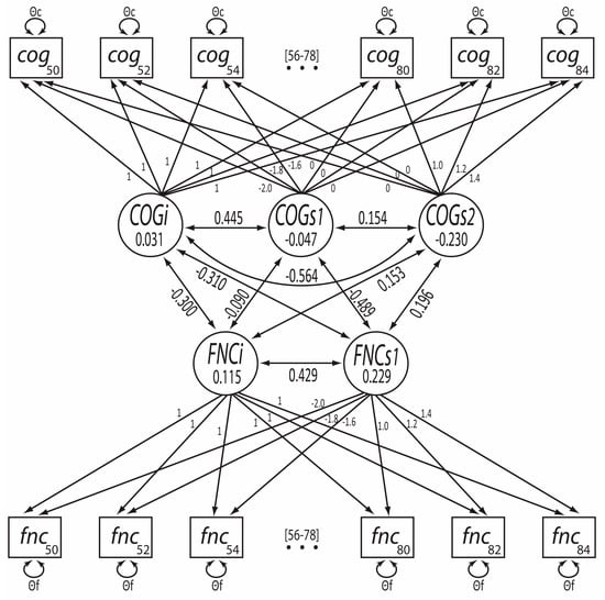 The following supporting information can be downloaded at: https://www.mdpi.com/article/10.3390/jintelligence11040065/s1, Figure S1.1. Histograms of participants’ means (across measurement waves) of cognitive scores; Figure S1.2. Histograms of participants’ means (across measurement waves) of functional limitation scores; Table S2.1. Correlations between cognitive items across waves; Table S2.2. Correlations between functional limitation items across waves; Table S3.1. Fit statistics for the longitudinal factor models; Table S3.2. Parameter estimates for the best-fitting bivariate longitudinal factor model.