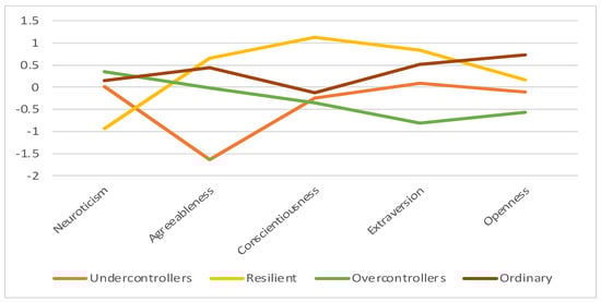 The Five-Factor Model (FFM) of personality is the most frequently employed model to investigate profiles based on personality traits. The FFM is composed of five broad dimensional domains, including neuroticism, agreeableness, extraversion, conscientiousness, and openness-to-experience, and is widely accepted as the predominant model for organizing personality traits commonly observed in the general population across a wide range of different languages and cultures (McCrae and Terracciano 2005). Given this universality, it is unsurprising that both behavioral genetic and family/twin studies have revealed these traits to be highly heritable (Jang et al. 2006). Moreover, variable-oriented factor analytic studies of the trait adjective checklist and objective personality instruments have repeatedly found the replicability of these five factors (McCrae et al. 1998; McCrae 2002). From a person-oriented variable approach, and by using these five domains as the foundational base, Yin et al. (2021) conducted a systematic review of 34 empirical studies, demonstrating that three- and four-profile solutions were the most dominant personality profiles using the FFM across different countries and cultures. Across the different studies, depending on the samples, the number of profiles extracted ranged from two to five depending on sample characteristics (Yin et al. 2021). In examining the broad range of labels provided for these profiles, Yin et al. (2021) recommended using the terms overcontroller, undercontroller, and resilient for consistency and comparability across studies. These terms align with Block and Block’s (1980) theoretical framework for ego-resilience (i.e., adaptive flexibility and resourcefulness) and ego-control (i.e., impulse control) domains (Barbaranelli 2002; Block and Block 1980; Bohane et al. 2017).