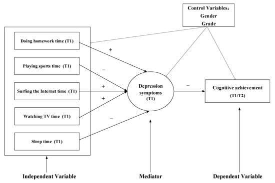 Previous literature has demonstrated a correlation between time use and cognitive achievement, yet little is known about the underlying mechanism. School achievement and psychological well-being are both crucial for adolescents, and a range of factors affect these outcomes, such as parental support (Moè et al. 2020), teacher enthusiasm (Moe et al. 2021), and also depression symptoms (Moè 2015). The present study focuses mostly on the latter variable by examining time use on the one hand, and cognitive achievement on the other. Depression symptoms may serve as the mediating factor that helps to explain this relationship. Control-value theory recognizes that emotions play a crucial role in cognitive processing and behavior. Positive emotions are often seen as a driving force for learning and development, resulting in improved learning efficiency and academic performance. Conversely, negative emotions have a detrimental effect, hindering behavior, learning outcomes, and personal growth (Pekrun et al. 2002; Pekrun 2006). Depression symptoms are the most common negative emotional expression among adolescents worldwide. The World Health Organization estimates that the burden of depression will exceed all other diseases by 2030 (Thapar et al. 2012). The negative impact of depression symptoms on adolescents is becoming increasingly apparent (Gao et al. 2020; X. Liu et al. 2022b), with the incidence among Chinese adolescents rising significantly to 57% following the outbreak of the COVID-19 pandemic (Chen et al. 2021). Unfortunately, few studies have focused on the mediating role of depression symptoms (Lim and Jeong 2022). A study of 562 Puerto Ricans over the age of 60 found that depression symptoms played a complete mediating role in the relationship between perceived daily discrimination and cognitive function (K. Wang et al. 2022). Relevant conclusions drawn from previous studies in other populations cannot be directly applied to the adolescent population, so it is of significance to examine the mediating effect of depression symptoms while taking into account the unique characteristics of adolescence.