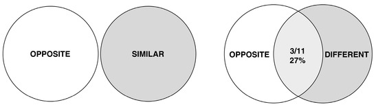 This issue was somehow in the minds of the founders of Experimental Psychology, both in Wund’s perspective and in Meinong’s and Ehrenfels’s phenomenological perspective (as shown by Bianchi and Savardi 2008a, pp. 23–28). However, the topic then disappeared from experimental investigations in the field of Psychology until recent times, but in the meantime, it became an important topic within language studies. We cannot, however, be in too much of a hurry to conclude that this disciplinary shift is a sign that opposition—unlike sameness, similarity and difference—is purely a matter of language. In the present paper, we aim to support this statement first by revising some of the literature that suggests it is, in fact, not the case that opposition is a mere linguistic issue (Section 1.3); then, we present the results of two empirical studies (Section 2 and Section 3).