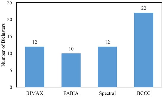The number of biclusters for different biclustering methods.