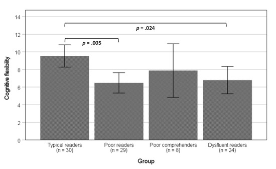 - Cartwright, Kelly B., Elizabeth A. Coppage, Amanda B. Lane, Terrain Singleton, Timothy R. Marshall, and Cassandra Bentivegna. 2017. Cognitive flexibility deficits in children with specific reading comprehension difficulties. Contemporary Educational Psychology 50: 33–44. [Google Scholar] [CrossRef]