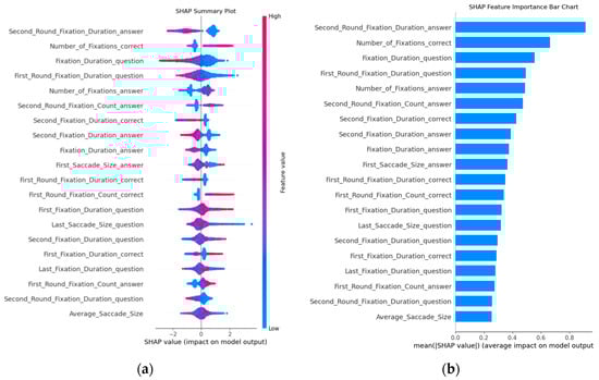 Given the limited interpretability of machine learning results, we do not clearly understand how various features contribute to predicting reasoning correctness. To identify which eye-tracking metrics play more significant roles, we used the SHAP method to interpret the best-performing black-box model. SHAP estimates the impact of each feature on the outcome based on game theory principles, enhancing model interpretability by calculating the Shapley values to measure the contribution of each feature as its importance (Lundberg and Lee 2017). Due to its advantages in interpretability and visualization, SHAP is widely used in the machine learning field (Nordin et al. 2023; Wang et al. 2023a).