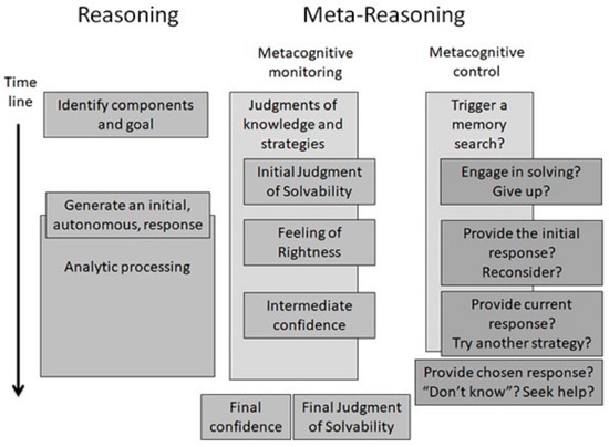 The approximate time course of reasoning and metareasoning processes as captured in Ackerman and Thompson’s (2018) metareasoning framework. Copyright (©2018) from “Meta-reasoning: Shedding meta-cognitive light on reasoning research” by Ackerman and Thompson (2018). [Permission to reproduce has been sought from Taylor and Francis Group, LLC, a division of Informa plc].
