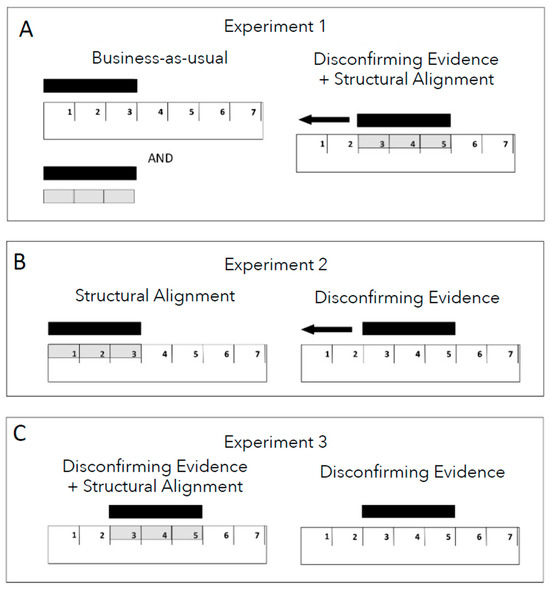 In Experiments 2 and 3, we probe whether one or both of the learning tools we utilize—disconfirming evidence and structural alignment—drive children’s improvement.