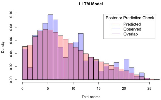 Figure 3 provides a visual representation of the precise alignment between the model’s predictions and the empirical observations after conducting comprehensive posterior predictive checks with the exception of cases where examinees exhibited lower response levels. In contrast, both the MLTM-D and LLTM models presented predictions that deviated from the credibility interval concerning marginal proportions of correct responses. These findings are substantiated by the results presented in Table 2.