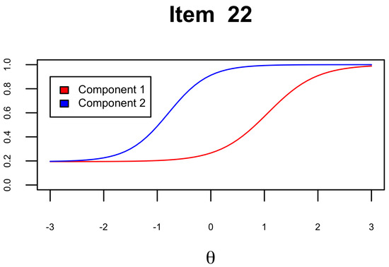 The characteristic curve presented in Figure 4 illustrates the curves of the two components that make up the item. As evidenced in this figure, especially in relation to item 22 and supported by the information in Table 4, the difficulty in obtaining accuracy is more affected by the contribution of component 1. This pattern is consistently observed in other characteristic curves available in the Appendix B.