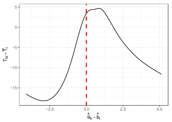 As an empirical illustration of this relationship in a cognitive achievement test, we used response time and accuracy data for 5929 respondents to a 75-item test of mathematics used for college placement at a university in the midwestern United States. We fit a Rasch model to the item responses to obtain estimates of both person trait and item difficulty for each respondent and item. For each item , we computed its mean response time across all respondents. Figure 1 shows the nonparametric regression curve of the demeaned response time against across all responses. It clearly shows an inverted U/V relationship with a turning point near zero, suggesting that response times are longest when the probability of answering the item correctly is near 0.5. As responses associated with a below 0 are more likely incorrect responses, and those associated with a above 0 are more likely correct responses, our speculation that respondents appear to put more time into items where time is needed and useful appears to be a reasonable assumption.