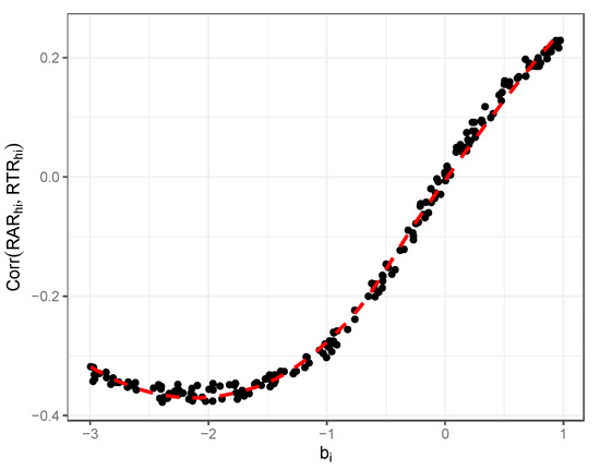 We can also consider the empirical associations seen between the latent proficiency and RAR/RTR associations as the empirical observation (3) above. Figure 8 displays these associations as estimated from our simulated data. Figure 8 shows the true generating as the x-axis and the estimated correlation between RAR and RTR at the respondent’s level in our simulation. As we simulated 200 item responses per respondent, each of these respondent-level correlations is estimated from 200 observations. Again, as discussed by De Boeck and Rijmen (2020), we see a strong negative correlation between proficiency level and this residual correlation, an additional empirical pattern they highlight.
