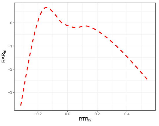 Our last example concerns the curvilinear relationship seen between response time and response accuracy. Figure 9 displays a smooth function estimate of the RAR against the RTR (x-axis). Here, too, our pattern corresponds closely to the empirical observations observed in Chen et al. (2018) and Bolsinova and Molenaar (2018) and reported by De Boeck and Rijmen (2020)—specifically, those which state that at low levels of RTR, the relationship increases up to a point below , where it then begins to decline such that, for the majority of RTR observations, its relationship with RAR is negative.