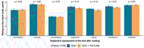 | TEXT × PICTURE | 0.70 | −0.72 | −0.88 ** | 0.59 | 0.79 * | 0.38 | 0.69 |