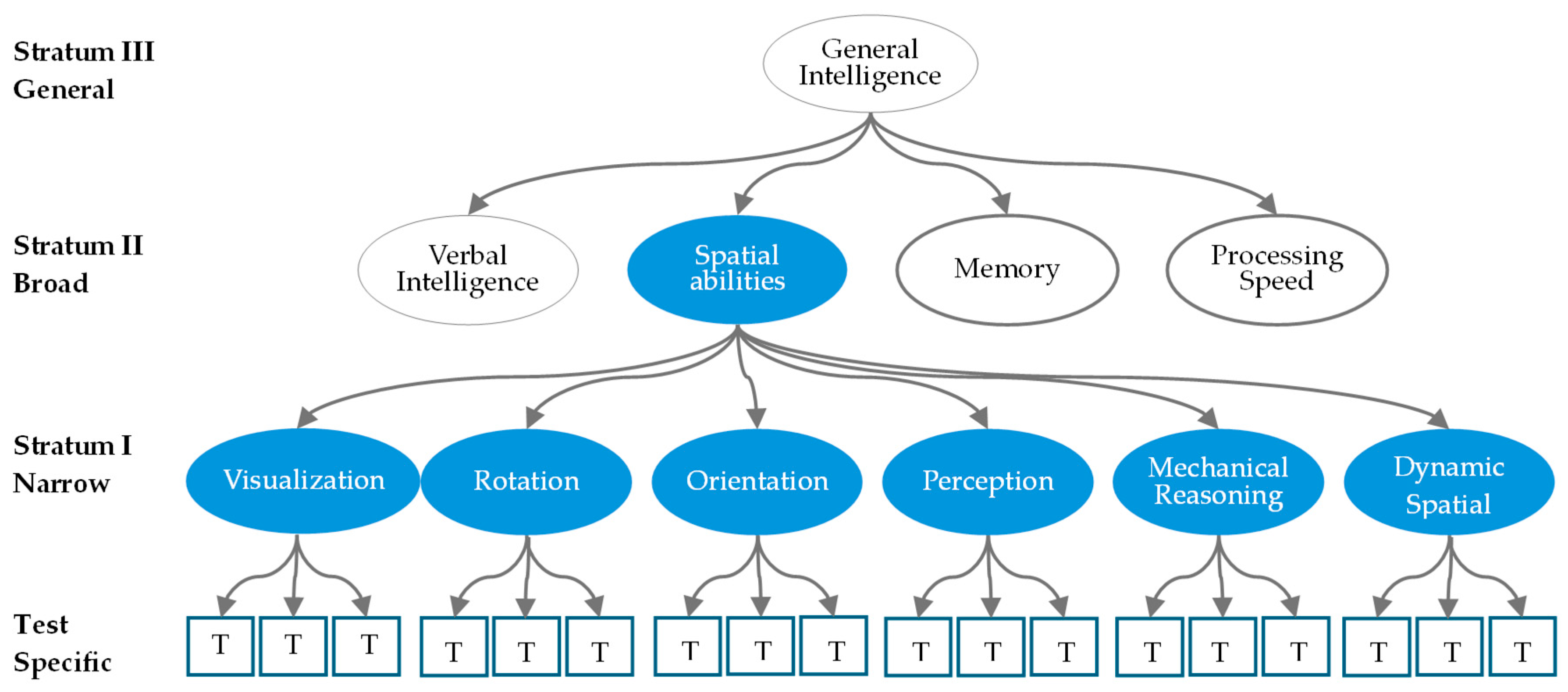 Figure 11 reveal distinct patterns in how various spatial attributes contribute to general spatial reasoning ability (theta) within different spatial ability classification frameworks. Across all models and framework, we found that certain attributes emerge as critical to higher general spatial reasoning ability, such as mental rotation in the Linn model, mental transformation in the Hegarty model, dynamic spatial processing in the Uttal model, and mental rotation in the Lakin model. These attributes likely serve as core components in fostering a robust spatial skillset, regardless of the specific classification framework.