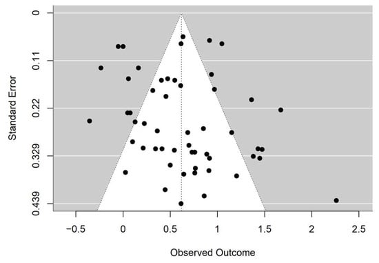 Given that some included studies had relatively small sample sizes, Hedges’ g with 95% confidence intervals (CIs) was chosen as the measure of effect size. Compared with Cohen’s d, g includes a correction factor that reduces bias in small samples (Hedges 1981), while they yield nearly identical results in large-sample studies, making it more accurate under such conditions (Zheng et al. 2011). The interpretation of effect sizes followed Cohen’s conventional benchmarks: effect sizes less than 0.2 were considered negligible, those between 0.2 and 0.5 indicated a small effect, those between 0.5 and 0.8 indicated a medium-to-large effect, and values above 0.8 indicated a large effect (Cohen 2013).