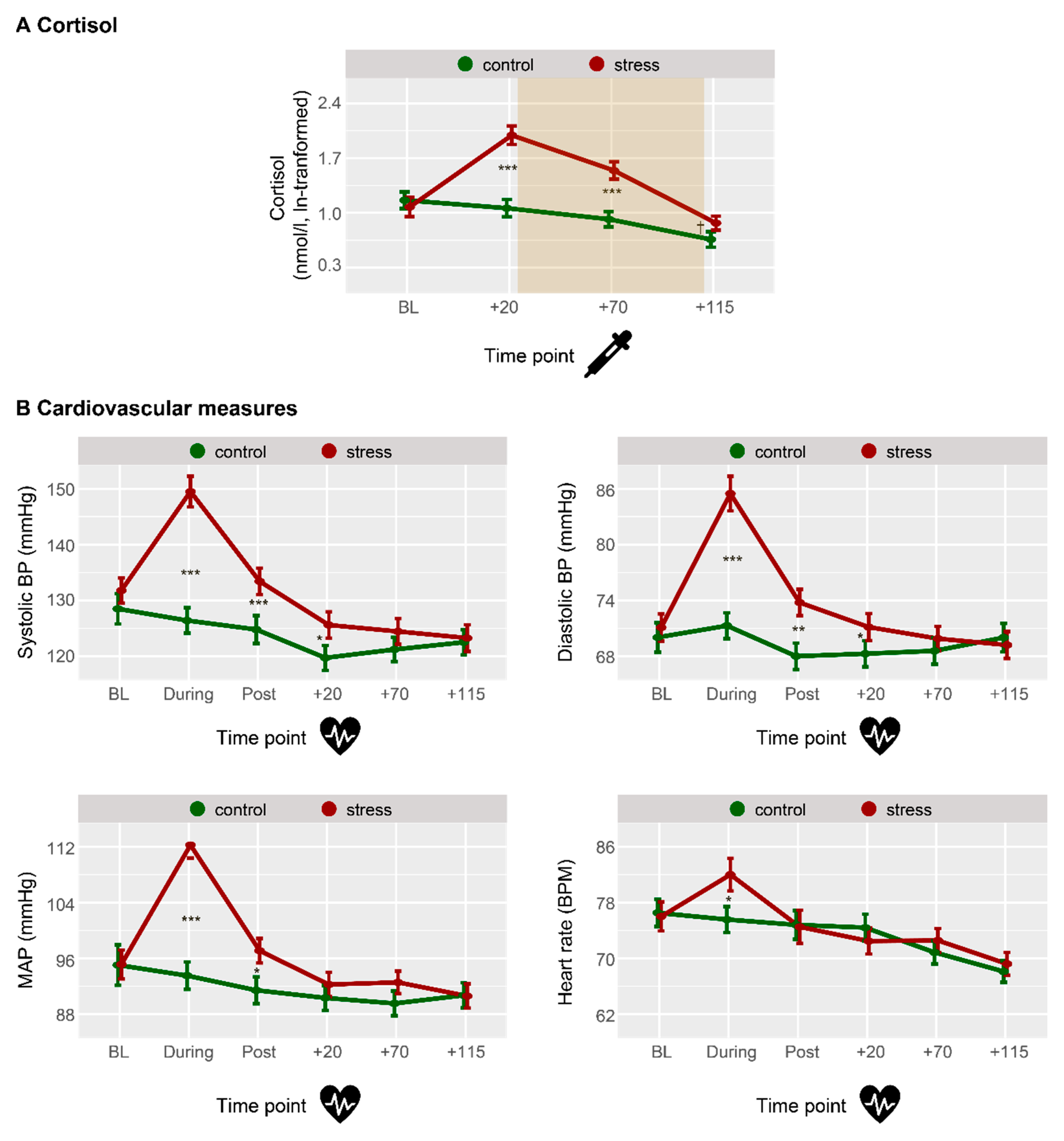 3.1. Increase in Physiological and Subjective Stress Markers After Stress Induction