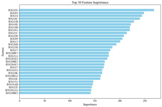 Top 30 Feature Importance Scores Identified by LightGBM.