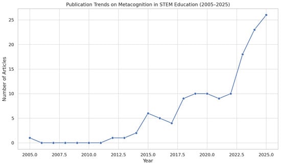 3.1. RQ1: What Are the Publication Trends on Metacognition in STEM Education Between 2005 and 2025?
