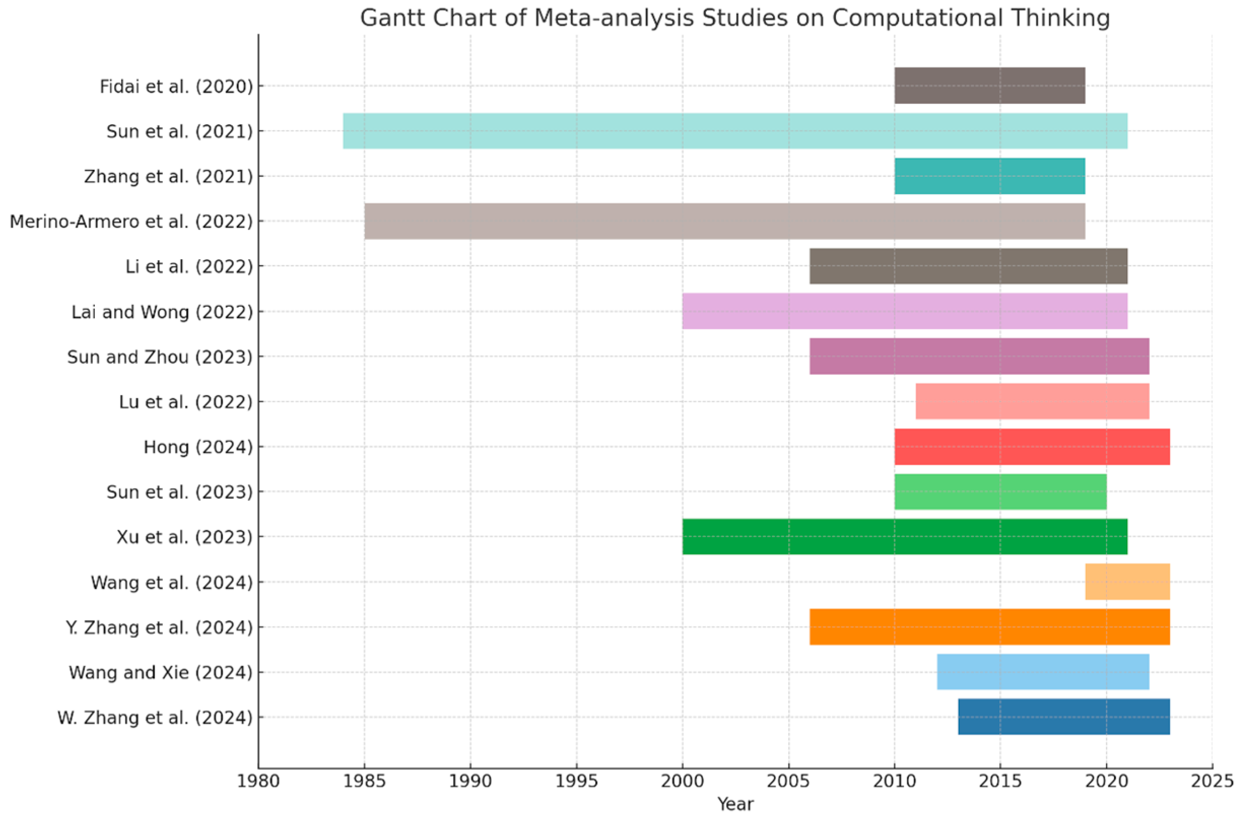 - Zhang, Wuwen, Yurong Guan, and Zhihua Hu. 2024a. The efficacy of project-based learning in enhancing computational thinking among students: A meta-analysis of 31 experiments and quasi-experiments. Education and Information Technologies 29: 14513–45. [Google Scholar] [CrossRef]