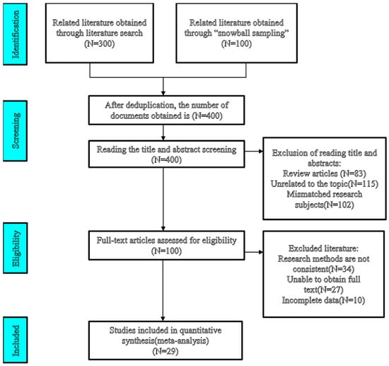 Following these selection criteria, a total of 29 studies, comprising 59 effect sizes, met the inclusion criteria and were retained for subsequent meta-analysis. The process of literature screening is illustrated in Figure 1.