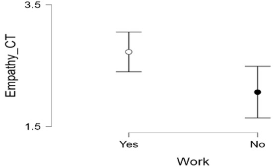 Finally, respondents who are working consider that empathy is a fundamental element of CT, unlike those who are not working (Table 8 and Figure 2).