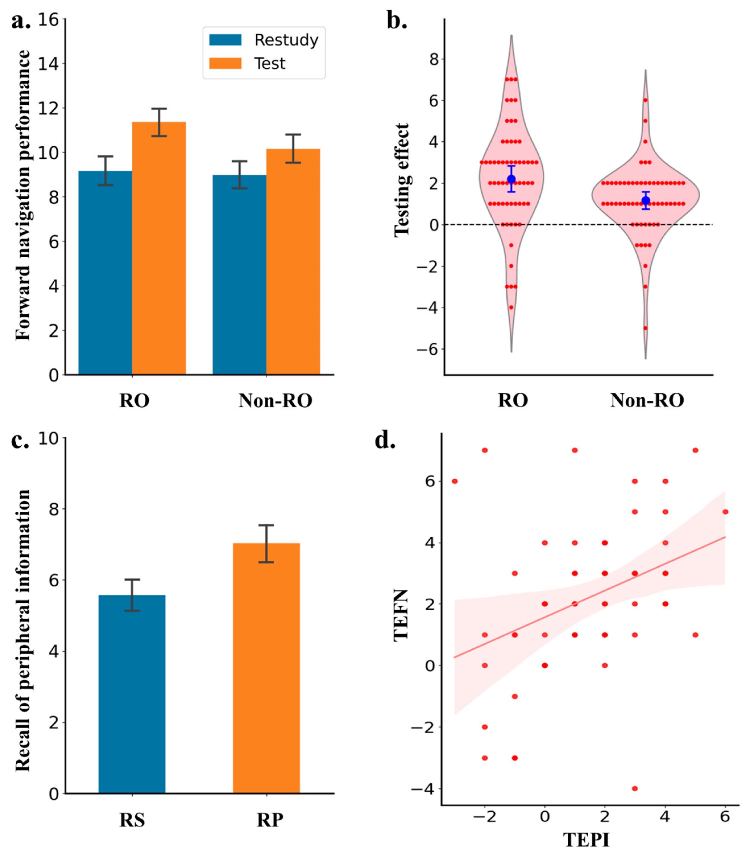 7.2. Negative Effects of Retrieval Practice on Map Learning (Experiments 2 and 3)