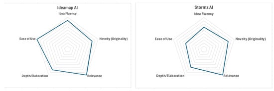 This is a hypothetical example (Table 11) of how we score the top three GenAI tools on the five criteria (Idea Fluency, Novelty (Originality), Relevance, Depth/Elaboration and Ease of Use). The two evaluators independently assessed each tool using a five-point Likert scale. The Spearman–Brown coefficient was 0.80, indicating good agreement between the two judges.