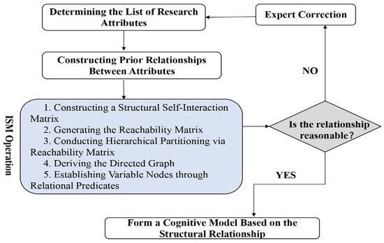 After identifing 11 knowledge modules, the study focus shifted to developing appropriate cognitive models for each module. In educational research, cognitive modeling is typically defined as “the cognitive processes that are used to describe students’ problem-solving on tests” (Leighton and Gierl 2007a). These models not only help identify knowledge and skills corresponding to students’ different learning levels, but also offer explanations and predictions regarding student performance (Leighton and Gierl 2007a). High-quality cognitive modeling requires collaboration among teaching professionals, psychologists, measurement scientists, and teachers. However, there are no well-established methods for developing cognitive models (Sun et al. 2023). Current approaches predominantly rely on the delphi method, student oral reports and literature reviews—methods that suffer from low consistency and limited operability (Gierl et al. 2010). In this study, following the identification of knowledge modules, the next step is to analyze the logical relationships of these modules to construct a cognitive model. Given that the knowledge modules involve numerous complex elements, conventional modeling methods are poorly adaptable and have limited practical value. To address this complexity, this study adopts the interpretive structural modeling (ISM) method. The ISM method enables the construction of a comprehensive system model that integrates multiple components (whether directly or indirectly associated), thereby accurately characterizing the internal logic of complex situations (Attri et al. 2013a; Raj et al. 2008). The specific steps for modeling using ISM are shown in Figure 1.
