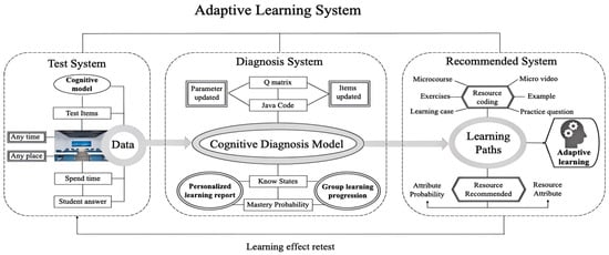 A computerized cognitive diagnosis-based adaptive learning system is a large cyclic cycle, where an adaptive cycle is formed through testing, diagnosis, and learning resource recommendation. Such cycles achieve the goal of adapting to different students, ultimately realizing personalized learning and enhancing students’ learning efficiency.
