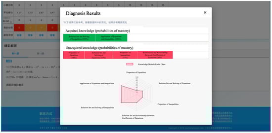 The diagnostic system is characterized by continuous iterative updating; after a period of testing, the parameters of each test question in the system can be refined. As the volume of accumulated data gradually increases, the item parameters will become increasingly accurate, thereby enabling iterative optimization of the system. The purpose of the diagnosis is to provide feedback about each student’s learning status, primarily including the probability of each student mastering each attribute, and further generate the personalized learning pathways. Subsequently, it recommends remedial teaching resources based on the information of the diagnosis. The resulting interface of the assessment system is shown in Figure 7.