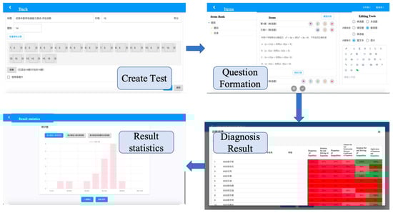 In addition, teachers (administrators) will have different permissions in this system, such as creating tests, composing test questions, entering test questions, viewing each student’s results, and diagnostic analysis. The main operation interface is shown in Figure 9 below: