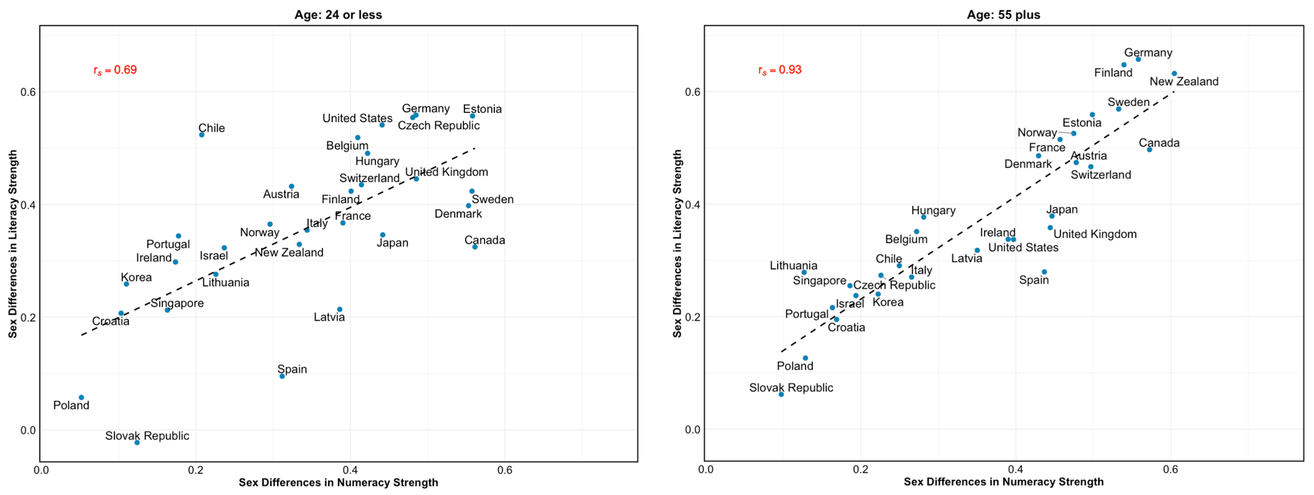 - Sex differences in intraindividual strengths are expected to favor men in numeracy skills and women in literacy, both overall and across age groups.