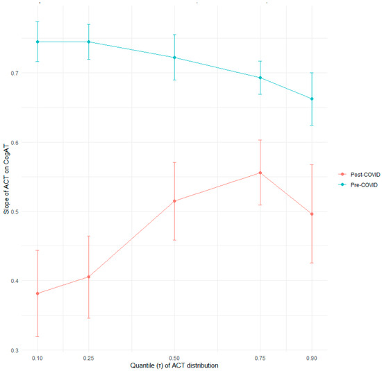 This study draws from two cohorts of students (total N = 10,508) to examine cognitive ability and achievement inequality around the COVID-19 pandemic. Before and after the pandemic, two groups of Arkansas students were given both the Cognitive Abilities Test (CogAT), which is considered more of an ability or reasoning measure, and the ACT-Aspire, which is considered more of an achievement measure. We use a quantile regression framework to examine possible distributional impacts of the COVID-19 pandemic. Results demonstrate that the cognitive ability and/or achievement gaps did not widen after the pandemic, instead they stayed stable or narrowed moderately across groups. Results also indicate that cognitive ability was a significant and consistent predictor of achievement before COVID-19, but the strength of this relationship attenuated noticeably after the pandemic. This work helps add to the literature on COVID learning changes (large losses for many students), drawing from a large database of students in one state. Full article