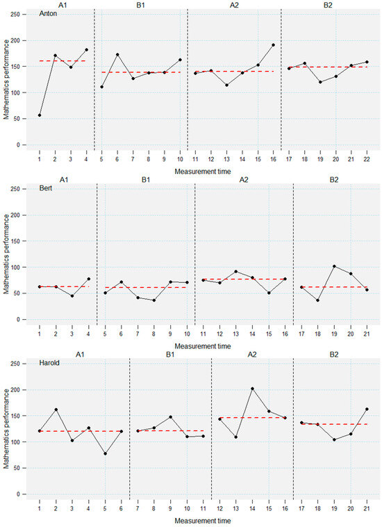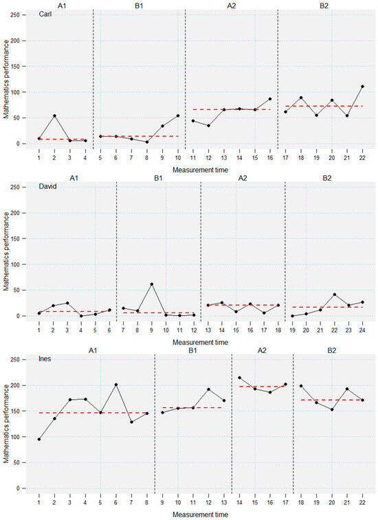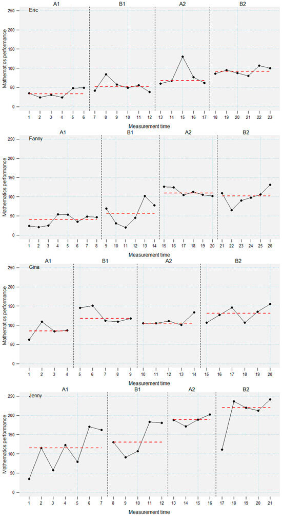 The moderation of intervention effects by intelligence and prior knowledge deserves further investigation, because they inform how to design and implement interventions. This study analyzed the moderation of the effectiveness of a computer-based mathematics intervention in 10 primary school students with low mathematics performance and low-to-average intelligence in an ABAB-single-case research design. Prior knowledge and intelligence were assessed before the intervention. The computer-based intervention trained basic numerical skills. Visual inspection of the learning trajectories revealed a broad heterogeneity of effectiveness of the intervention. A hierarchical piecewise regression analysis across all students revealed a significant negative moderation of the intervention effectiveness through intelligence. Whereas prior knowledge did not have a moderating influence, children with higher intelligence showed slower learning rates during the intervention in this specific low-performing sample. One reason for the negative moderation of the intervention effects could be that the intervention trained strategies and skills that more intelligent students had already developed. Full article