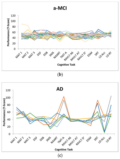 35]. The lack of differentiation may also be due to the nature of the tasks included in the broad profile dispersion computation. Given the nature of a-MCI and the circumscribed memory impairments that represent a hallmark of the condition, a-MCI individuals may only demonstrate greater dispersion with the inclusion of sufficient short-term and episodic memory measures in the battery. As the condition progresses towards AD pathology, inconsistent cognitive performance in domains that are initially more robust may become more apparent. As most of the memory tests included in the present battery were used for cognitive classification, they were necessarily excluded from the dispersion computation.