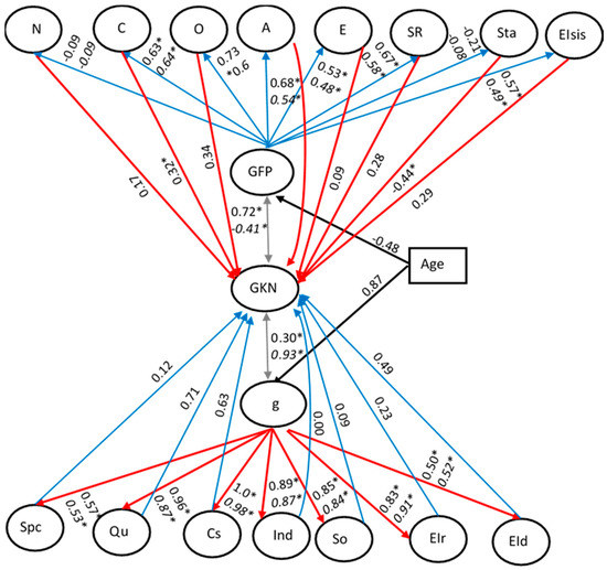 - Loehlin, J.C.; Bartels, M.; Boomsma, D.I.; Bratko, D.; Martin, N.G.; Nichols, R.C.; Wright, M.J. Is there a genetic correlation between General Factors of Intelligence and Personality? Twin Res. Hum. Genet. 2015, 18, 234–242. [Google Scholar] [CrossRef] [PubMed]
