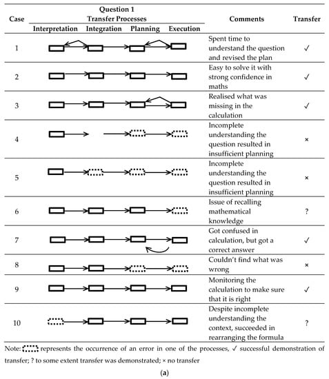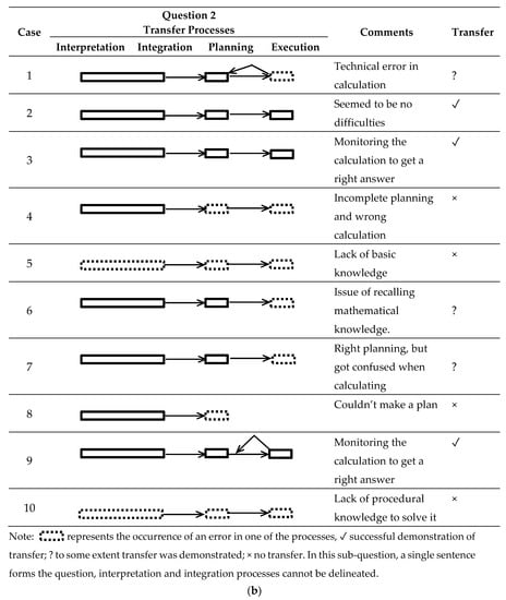 (a) Think-aloud reports on transfer processes for question 1. (b) Think-aloud reports on transfer processes for question 2.