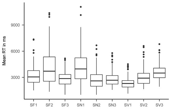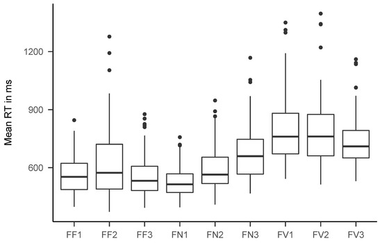 | 6—mean log RT | 0.58 ** | −0.70 ** | −0.59 ** | −0.63 ** | −0.55 ** | |||