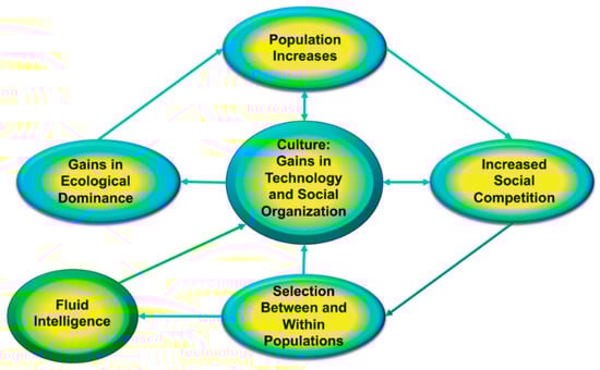 - Flinn, Mark V., David C. Geary, and Carol V. Ward. 2005. Ecological dominance, social competition, and coalitionary arms races: Why humans evolved extraordinary intelligence. Evolution and Human Behavior 26: 10–46. [Google Scholar] [CrossRef]