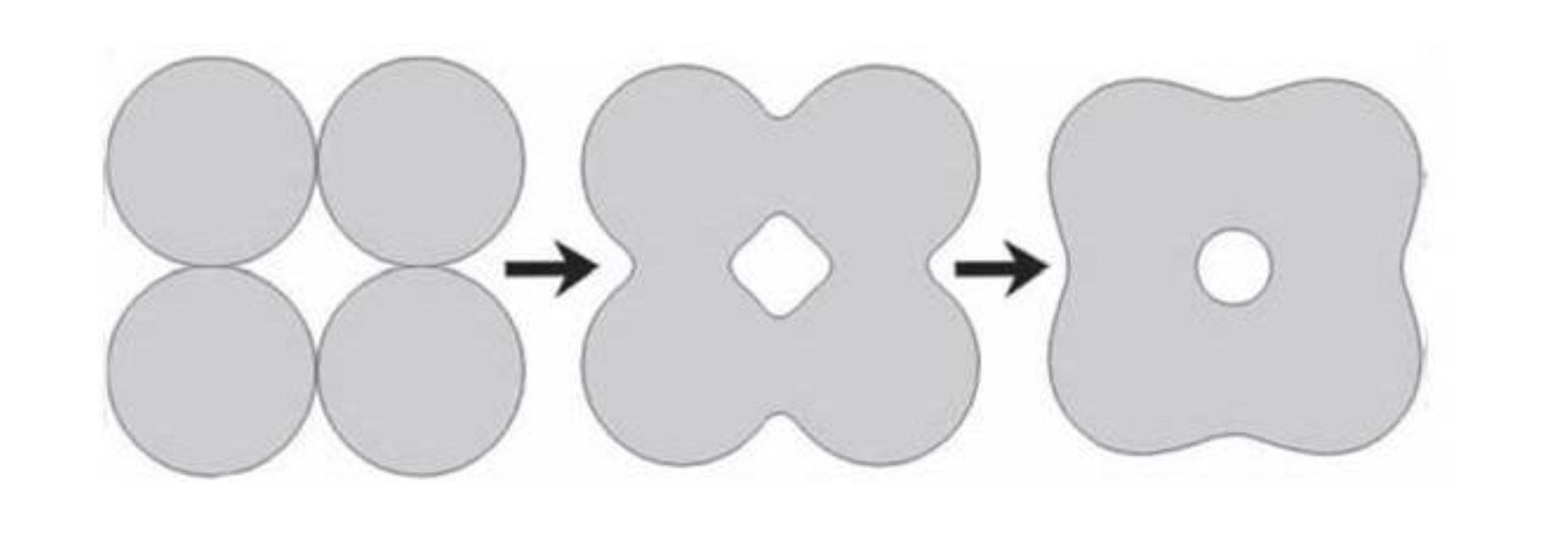 A sintering (or firing) procedure appears to be of a great importance to manufacture bulk bioceramics with the required properties. Usually, this stage is carried out according to controlled temperature programs of electric furnaces in adjusted ambience of air with necessary additional gasses; however, always at temperatures below the melting points of the materials. The firing step can include temporary holds at intermediate temperatures to burn out organic binders [179,180,181,182]. The heating rate, sintering temperature and holding time depend on the starting materials. For example, in the case of HA, these values are in the ranges of 0.5–3 °C/min, 1000–1250 °C and 2–5 h, respectively [222]. In the majority cases, sintering allows a structure to retain its shape. However, this process might be accompanied by a considerable degree of shrinkage [107], which must be accommodated in the fabrication process. The sintering mechanism is controlled by both surface and volume diffusion at grain boundaries. In general, when solids heat to high temperatures, the constituent ions or atoms are driven to move to fill up pores and open channels between the grains of powders, as well as to compensate for the surface energy differences among their convex and concave surfaces. At the initial stages, bottlenecks are formed and grow among the particles (Figure 2). Existing vacancies tend to flow away from the surfaces of sharply curved necks; this is an equivalent of a material flow towards the necks, which grow as the voids shrink. Small contact areas among the particles expand and, at the same time, a density of the compact increases and the total void volume decreases. As the pores and open channels are closed during a heat treatment, the particles become tightly bonded together and density, strength and fatigue resistance of the sintered object improve greatly. Grain-boundary diffusion was identified as the dominant mechanism for densification [223]. Furthermore, strong chemical bonds form among the particles and loosely compacted green bodies are hardened to denser materials [179,180,181,182].